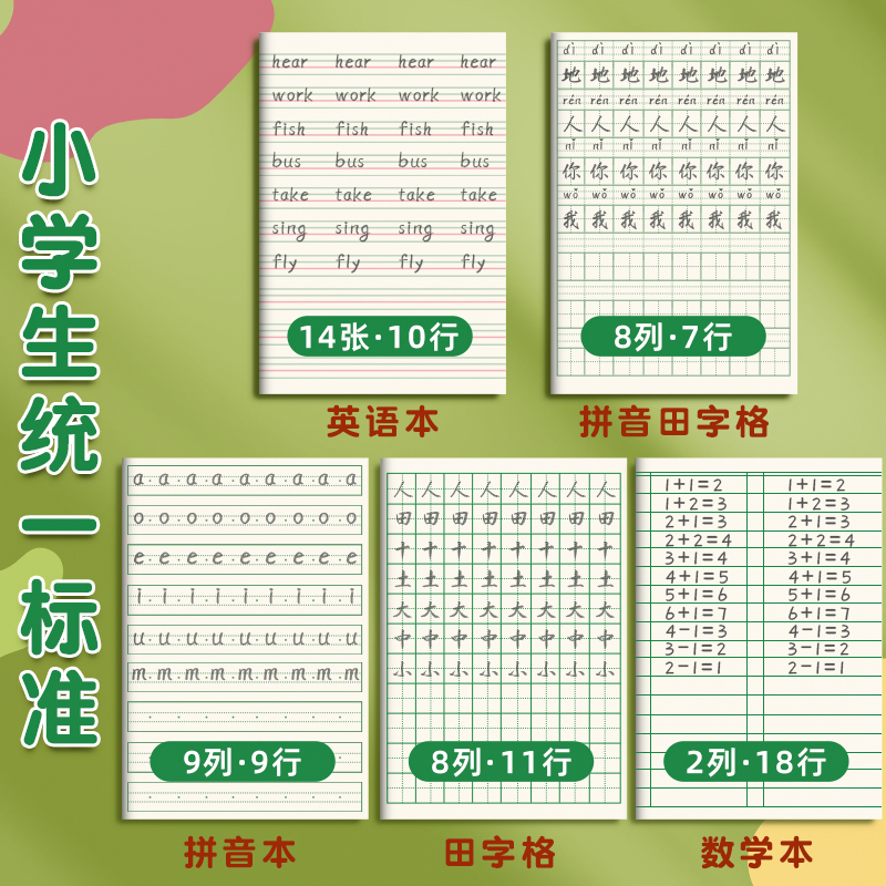 【田字格本】晨光小学生拼音作业本子生字本一年级田字格练字本方格小字统一汉语本幼儿园写字练习语文数学