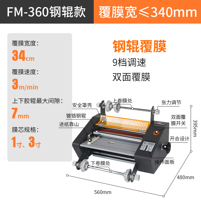 宝预FM-360钢辊覆膜机过膜机冷热双用钢辊覆膜机不干胶封面覆膜工厂图文店用机高速覆膜机装订机配套印后辅助