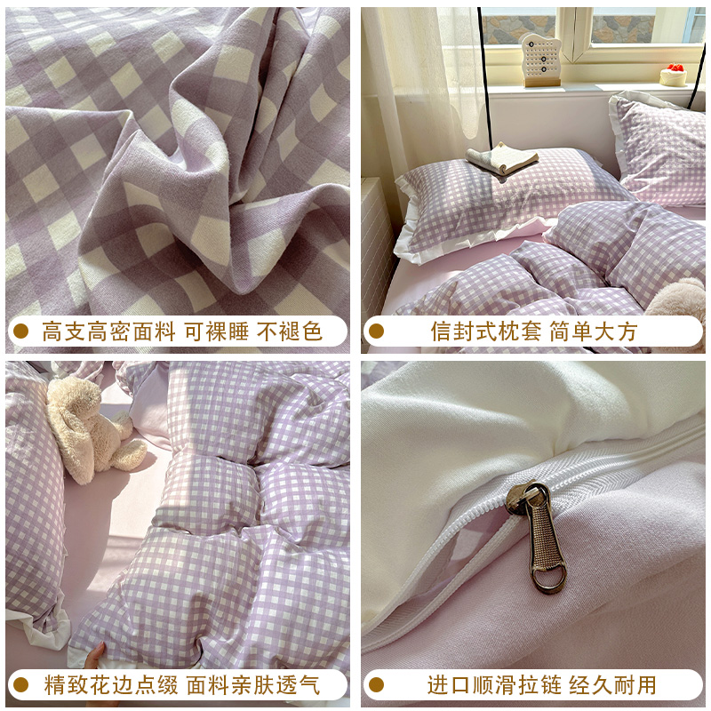 ins床上纯棉四件套2025新款全棉床单被套床品学生单人宿舍三件套4