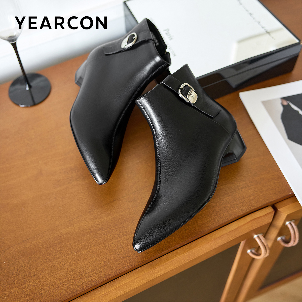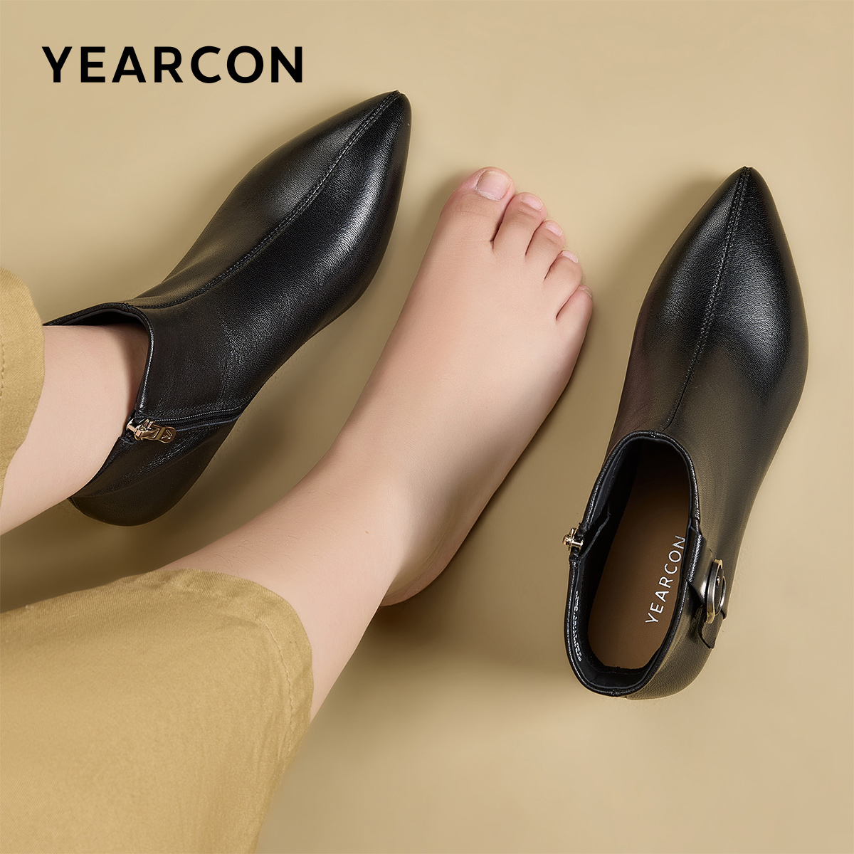 意尔康女鞋2025冬季大码羊皮短靴粗跟妈妈皮鞋气质单靴及踝靴真皮