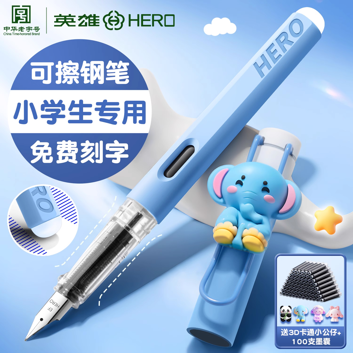 英雄牌可擦钢笔三年级小学生专用练字热敏可换墨囊儿童小学生初学者高颜值精致四年级刻字钢笔官方旗舰店