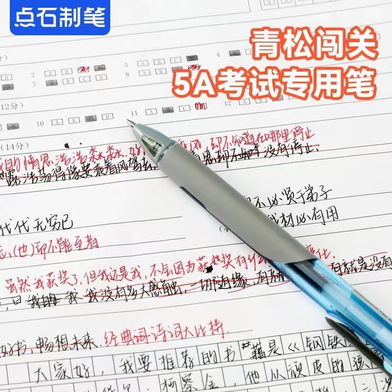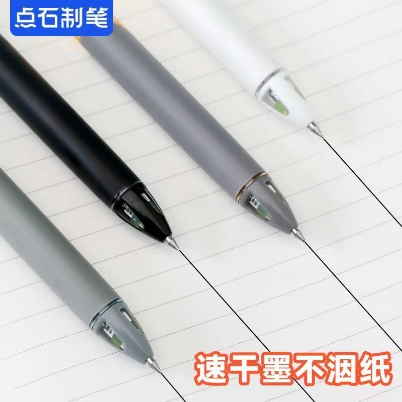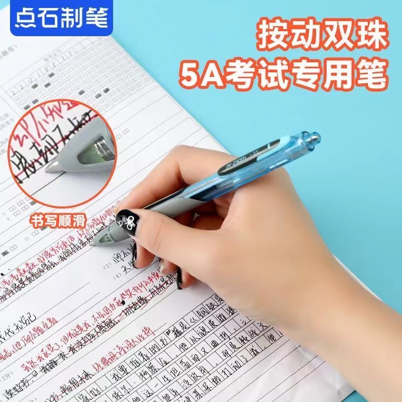 点石制笔5A考试笔顺滑防水静音按动笔0.5mm碳素黑笔中性笔速干笔