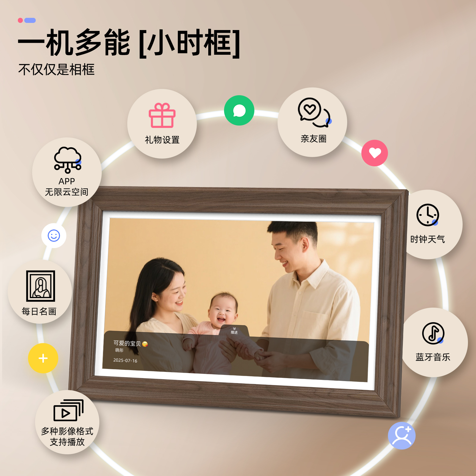 霓时智能数码相框15.6寸木制框架64G电子相册 高清云相框照片视频播放礼物礼品摆件摆台显示屏