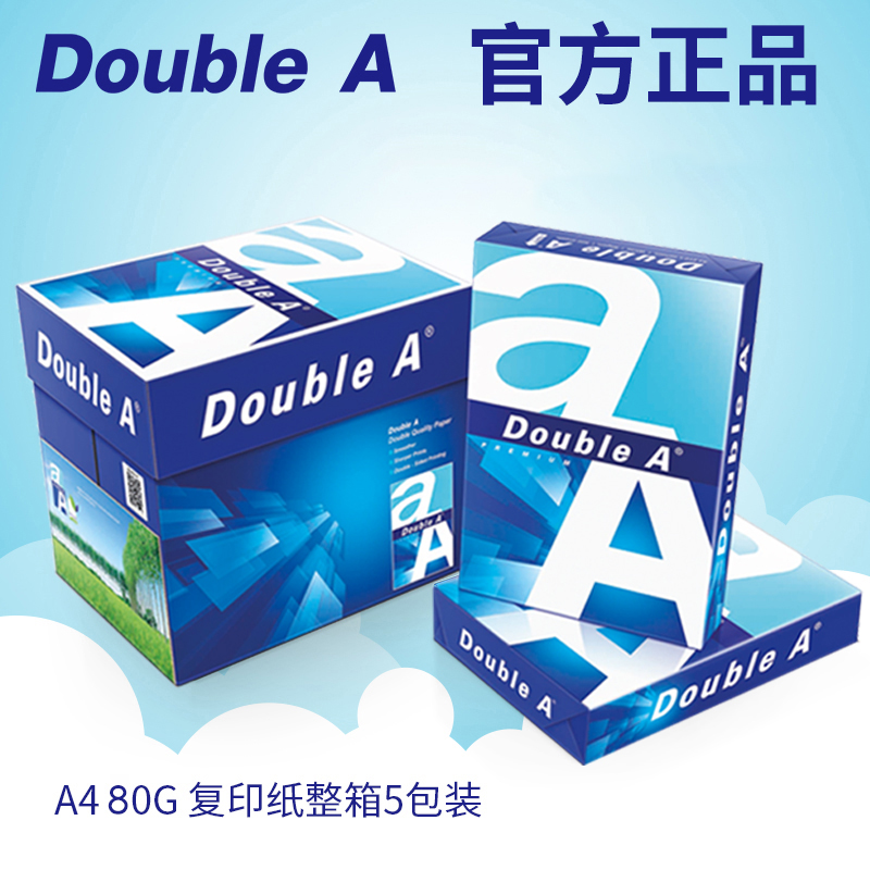 DoubleA达伯埃a4打印纸纸70克80克5包整箱每包500张A4办公双a打印