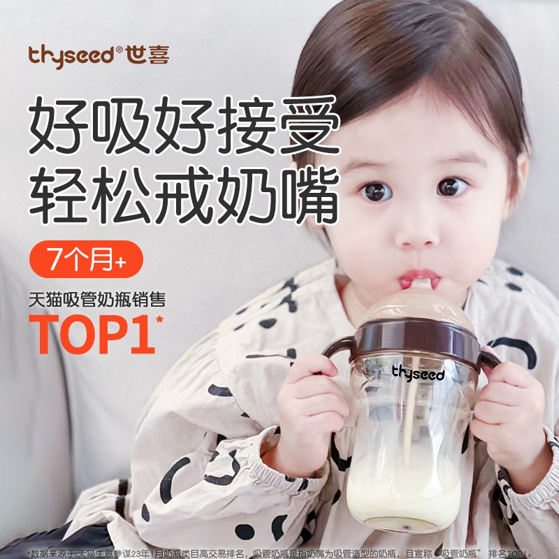 世喜吸管奶瓶直饮大宝宝6个月1-2-3岁以上吸管杯学饮重力球喝奶瓶