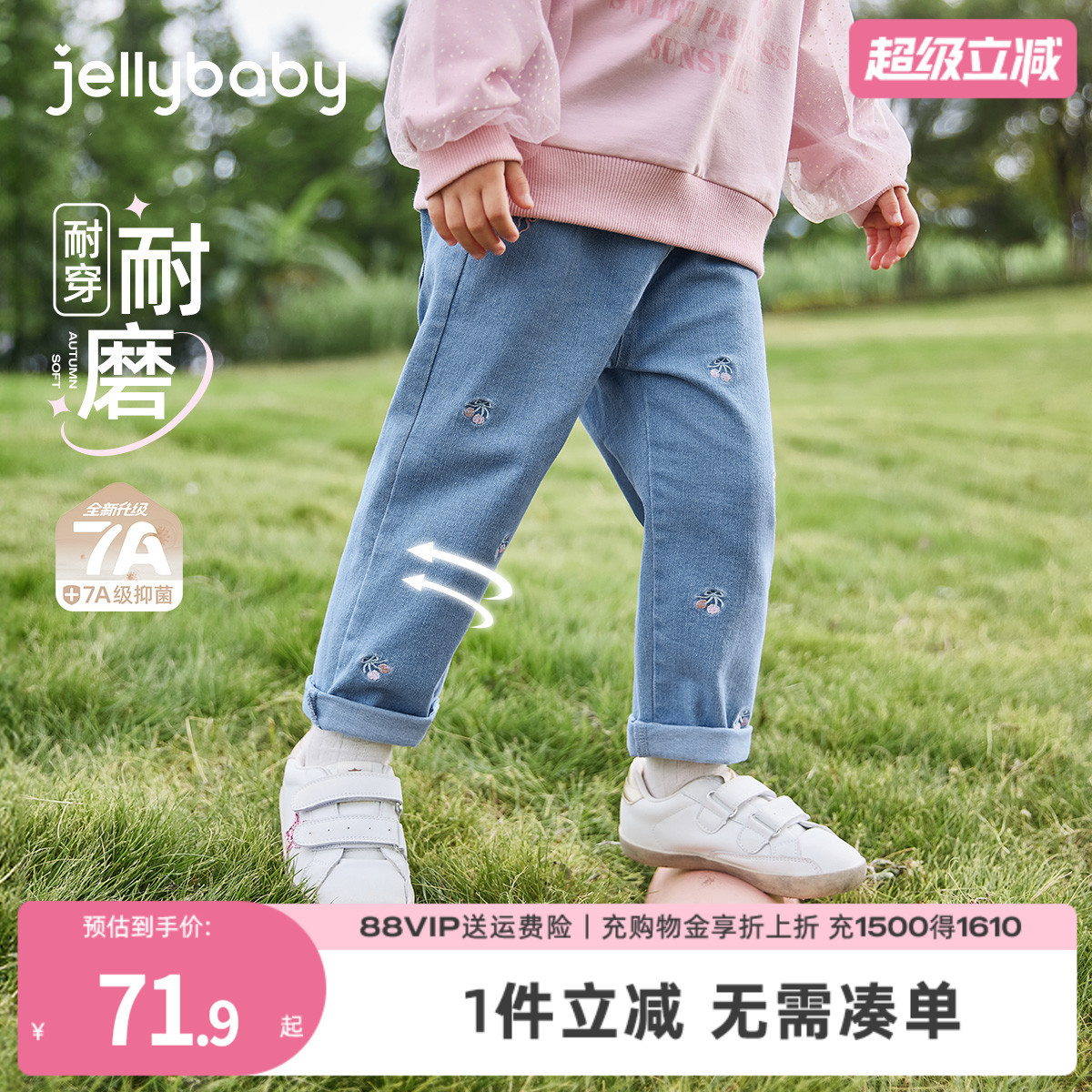 [7A抗菌]女童牛仔裤宝宝秋季新款长裤小女孩休闲秋装儿童直筒裤子