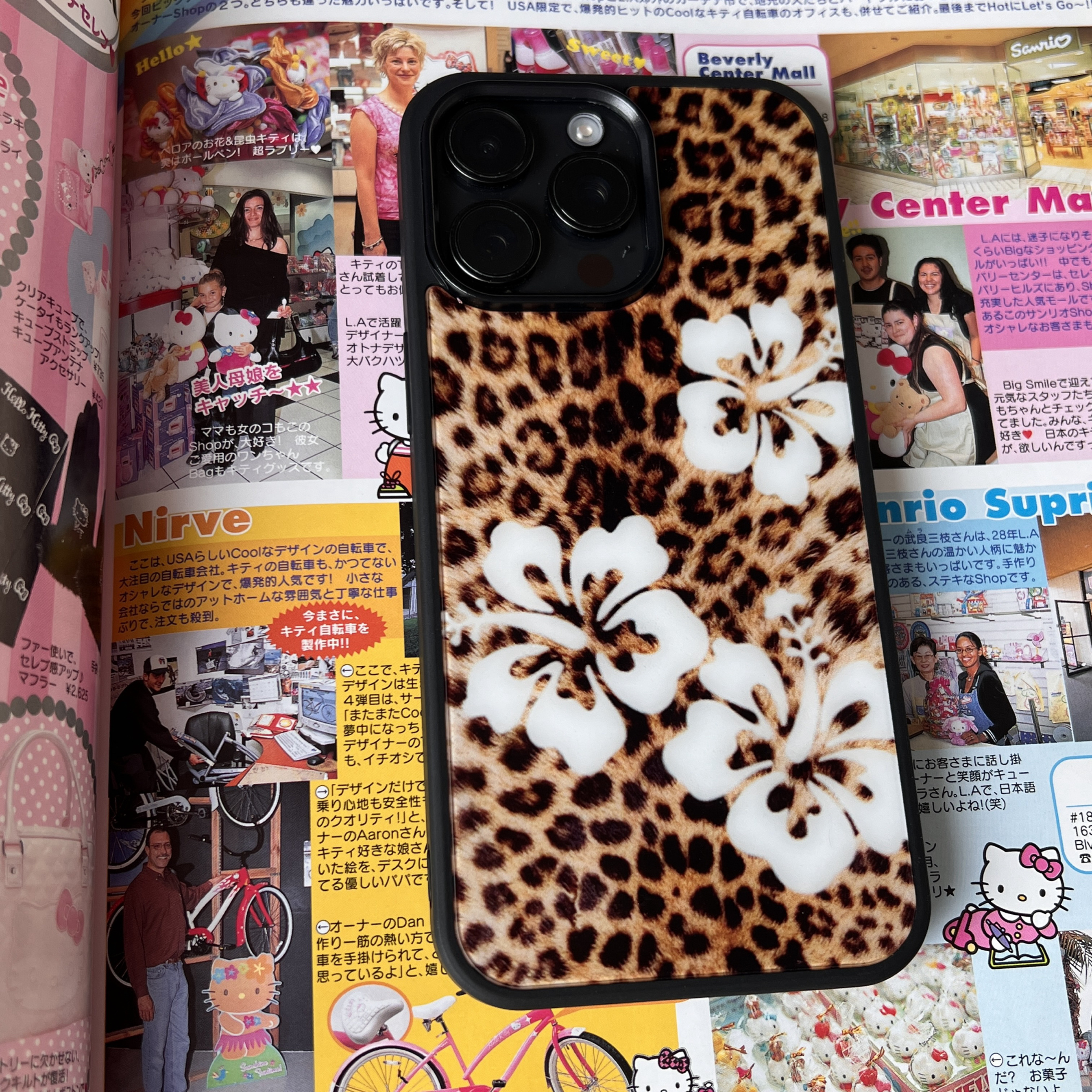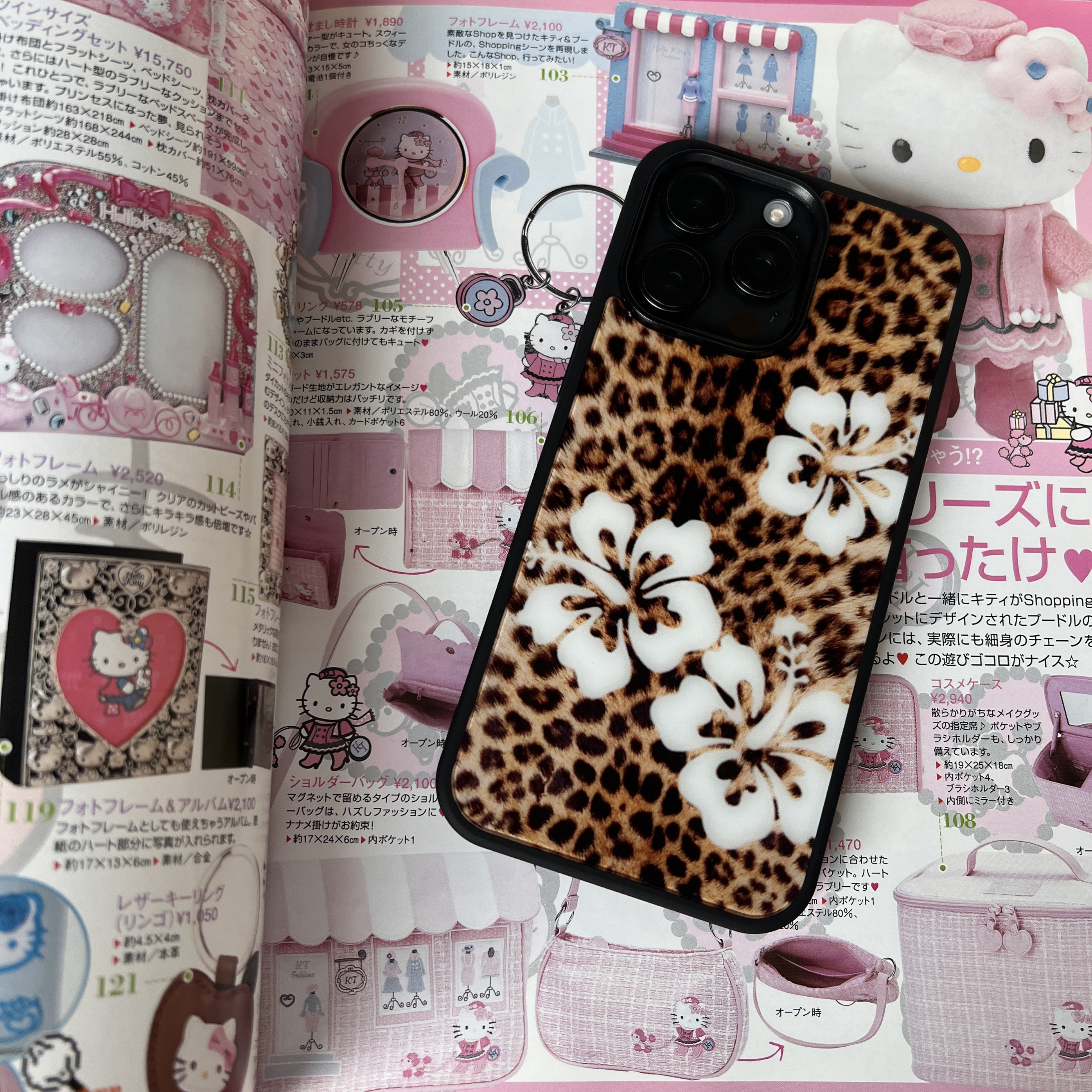 AnotherHill原创豹纹白色扶桑花 黑边亚克力四周全包手机壳 性感又可爱!超萌!背板有膜记得撕开哦
