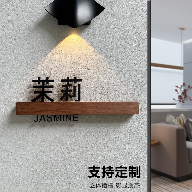 入户实木底座门牌定制p免打孔发光带灯别墅工作室饭店包厢号码牌