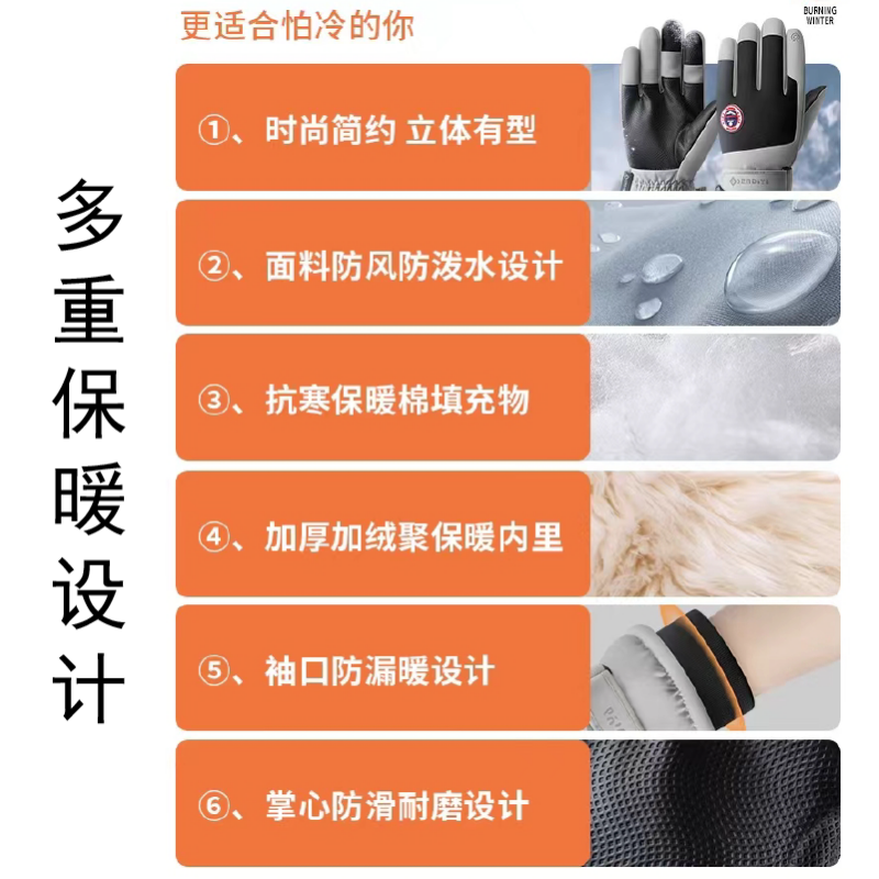 冬季滑雪手套触屏摩托车加绒保暖加厚骑行防水防风寒防滑户外防雨