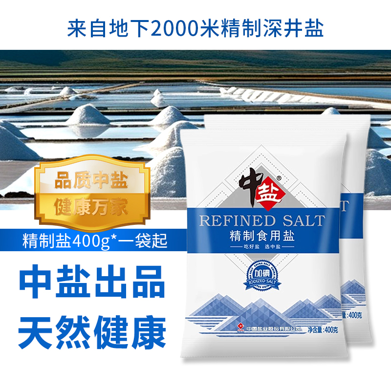 中盐精制食用盐加碘食盐未加碘细盐家用厨房炒菜调味盐巴井矿盐焗