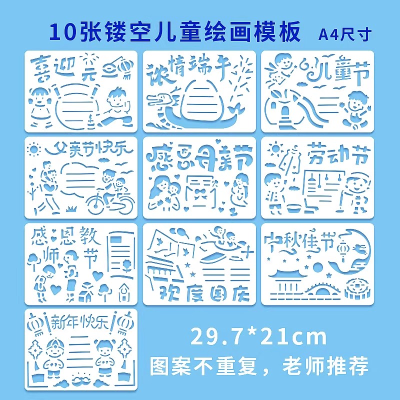 【46件套】小学初中生手抄报镂空模版套装大全各种节日主题手账本