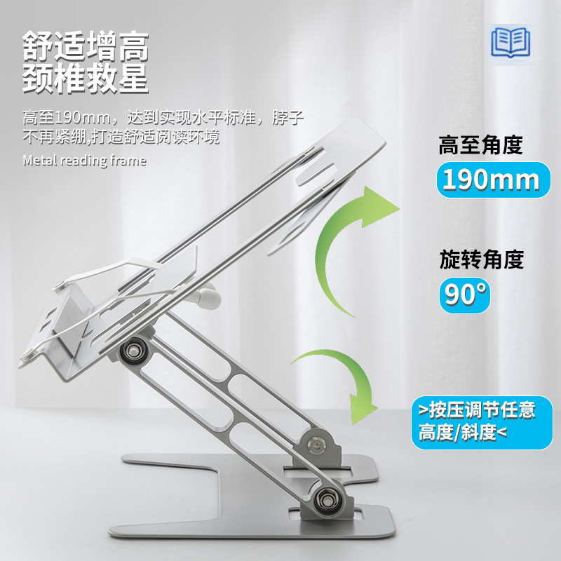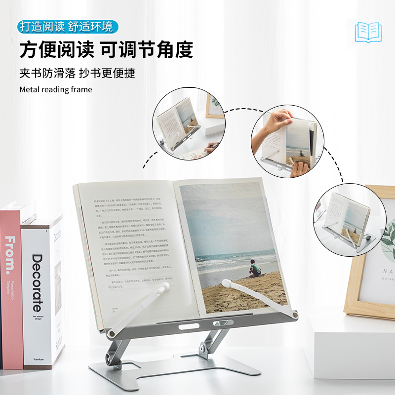 阅读架碳钢超轻耐用书架多功能折叠手机支架可升降平板电脑置物架夹书便携镂空可调节