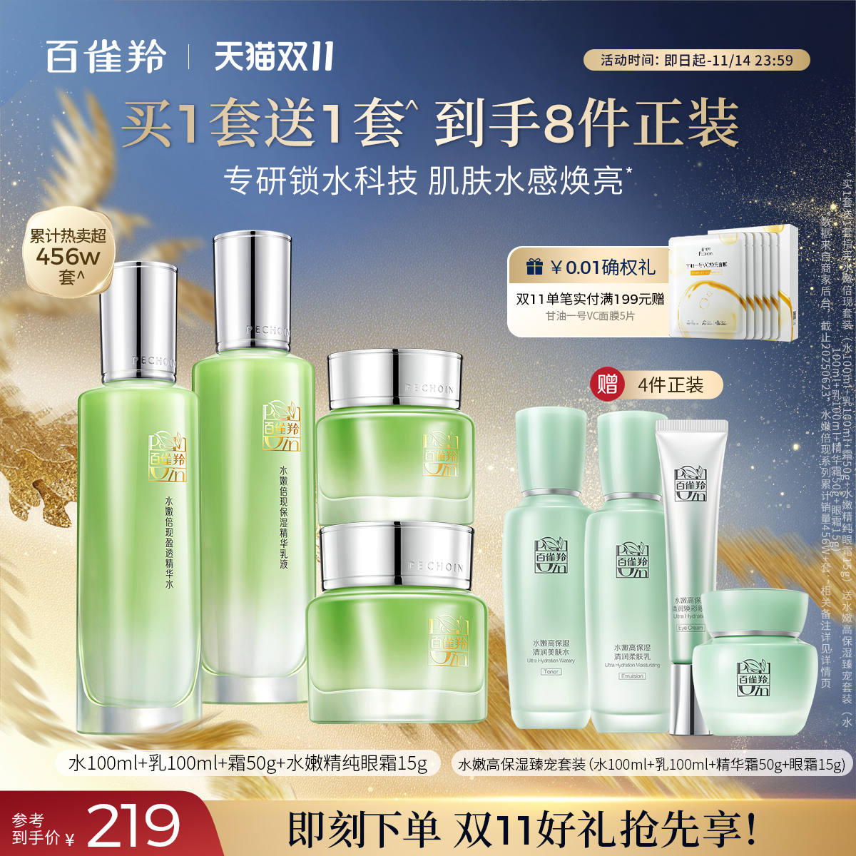 【双11现货】 百雀羚水嫩倍现水乳套装补水舒缓保湿官方旗舰店
