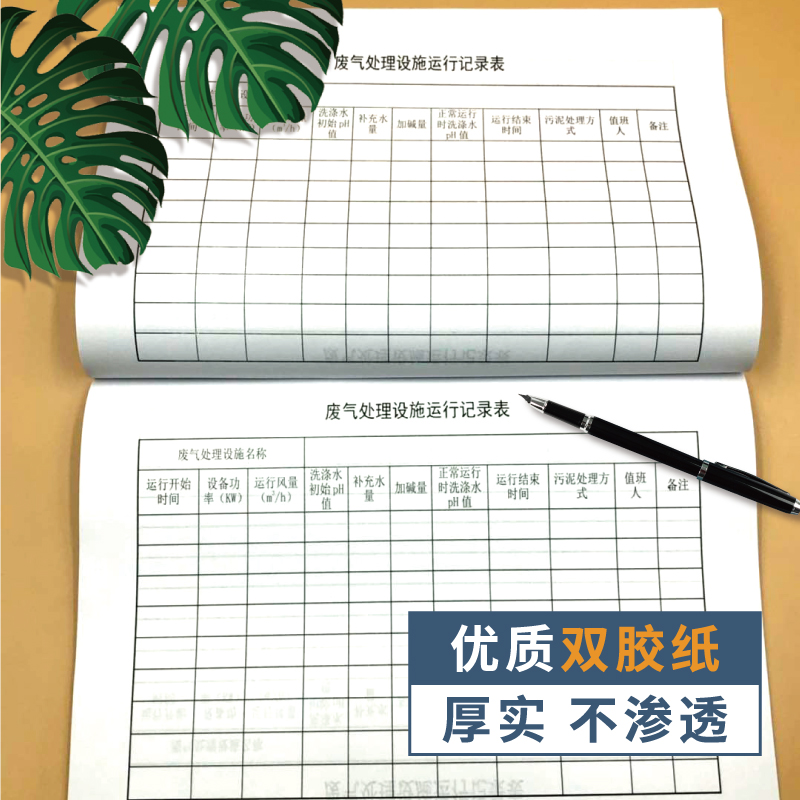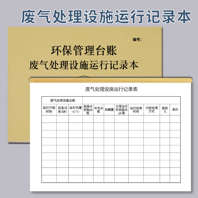 废气处理设施运行记录本 环保台账安全生产检查台账废气设备记录登记本登记簿记录表环保管理理台账环保台账