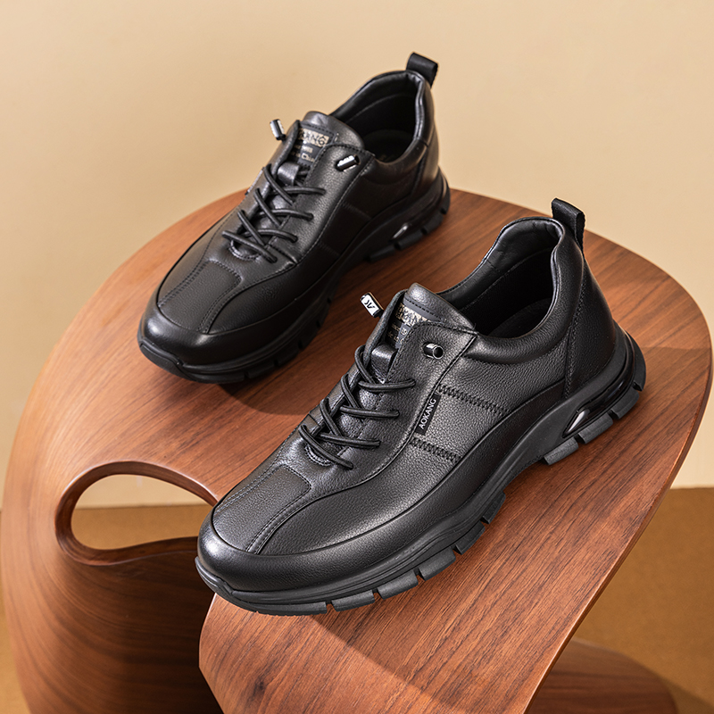 Aokang奥康秋季新款时尚休闲皮鞋男真皮减震舒适百搭通勤鞋