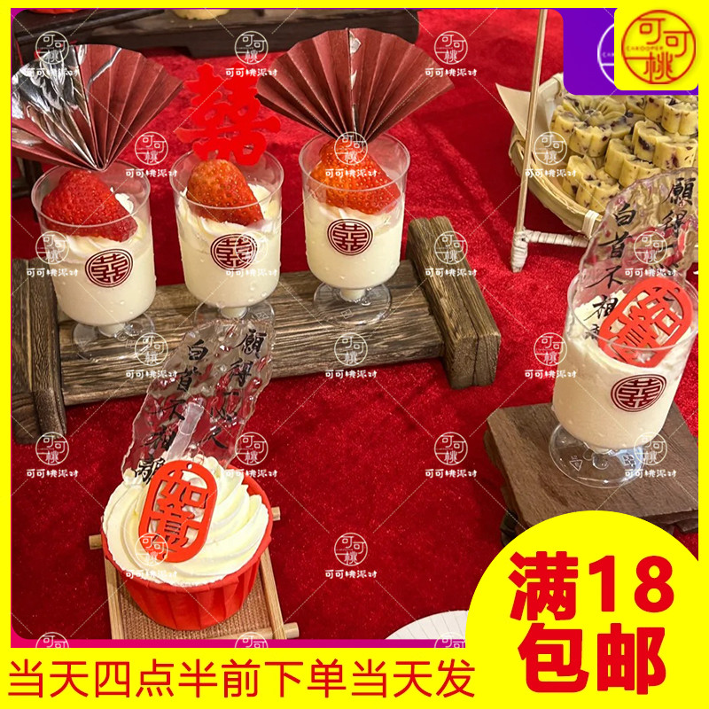 粉色甜品台蛋糕装饰唯美中式甜品台主题天地有情长若春日纸杯插牌