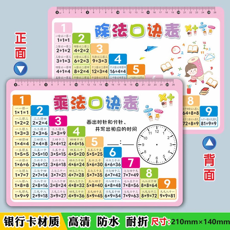 九九乘法口诀表背诵神器小学生二年级数学公式认知卡乘除法大卡片