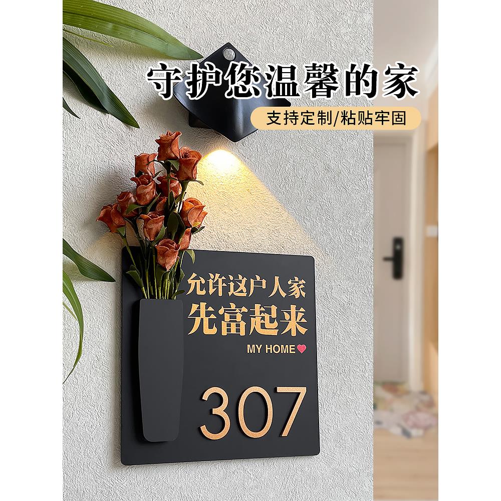 2025年新款门牌号高级感轻奢创意号码牌家用定制入户门装饰插花挂饰家庭住宅别墅门口门号房间房号标识牌订制
