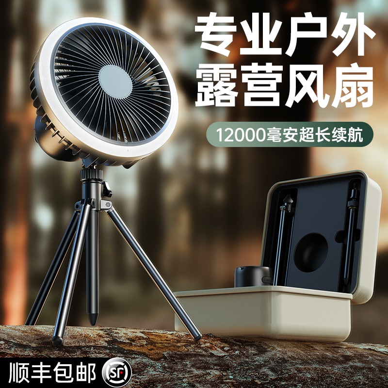 [可驱蚊]奢姿户外露营风扇随身携带野营usb充电吊扇台式三脚架灯小风扇大风力降温神器超长续航钓鱼帐篷折叠