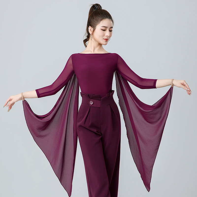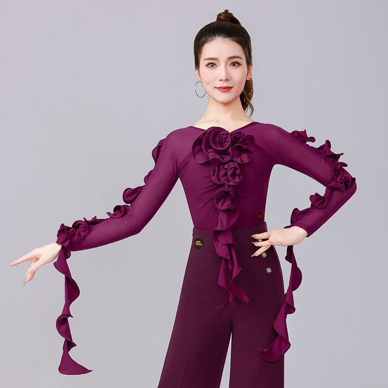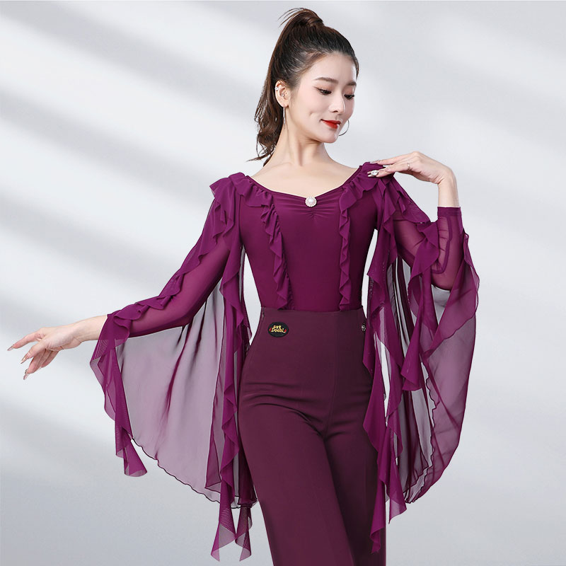 【紫红色上衣集合】2025新款跳舞衣服女高端长袖老年大学交谊舞服