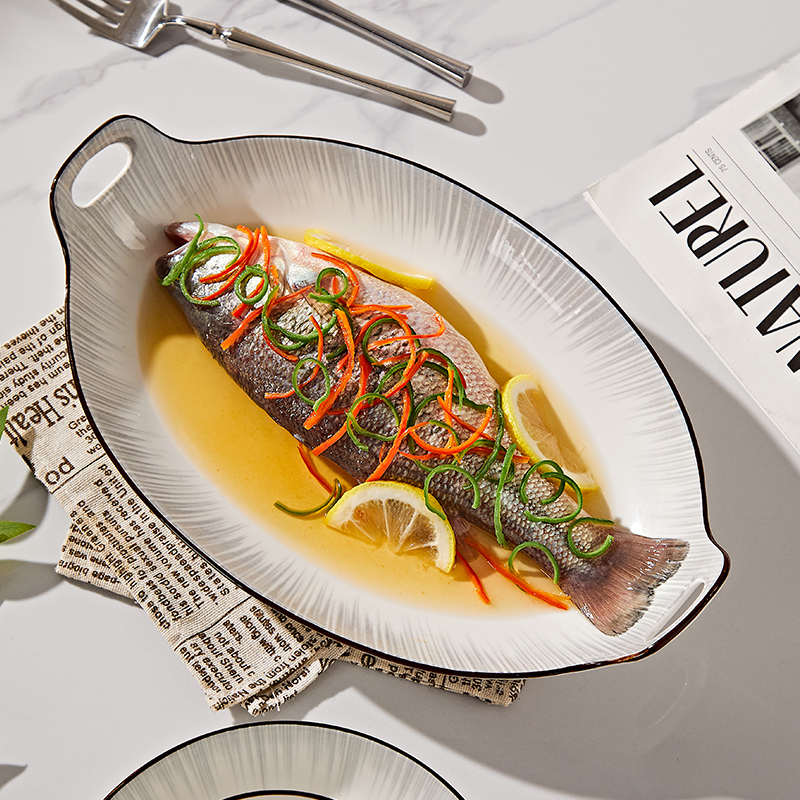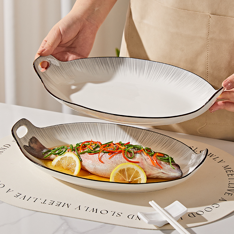 双耳陶瓷鱼盘家用2025新款大号蒸鱼盘子菜盘高级感轻奢鱼特别好看