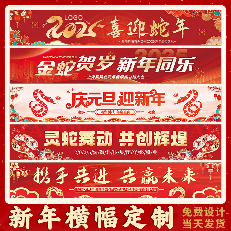 年会横幅定制定做公司旅游手拉旗新年聚会晚会宣传标语团建聚餐活动氛围挂布装饰拉条企业周年庆彩色条幅制作