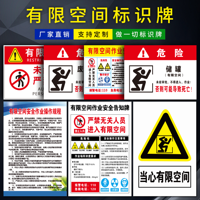 有限空间安全告知牌警示标识牌 职业危害告知牌 受限未经许可严禁作业警示牌 风险点告知牌卡 安全警告标志
