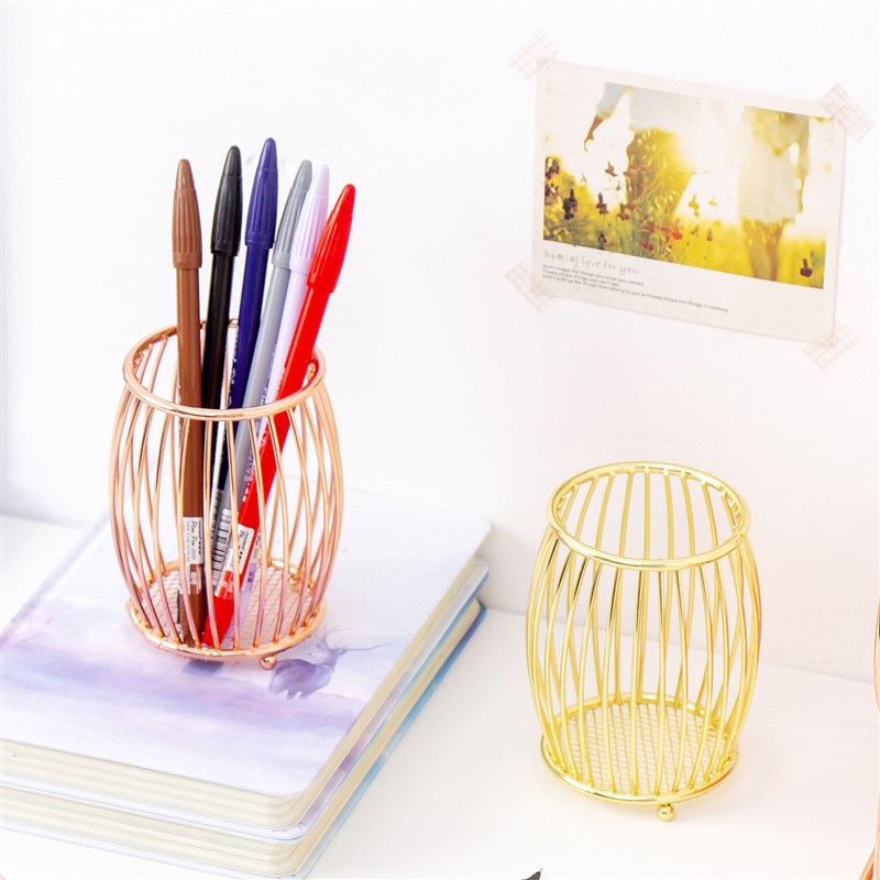 速发风玫瑰金笔筒 创意化妆刷收纳筒桶办公桌面收纳