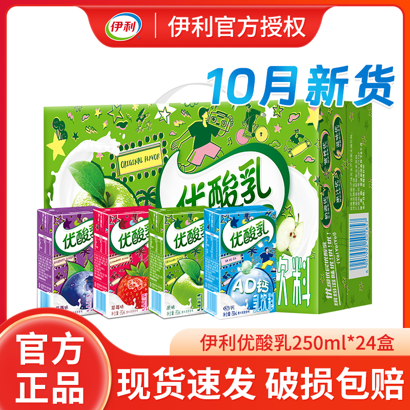10月伊利优酸乳原味含乳饮料250ml*24/盒酸乳饮品儿童学生早餐