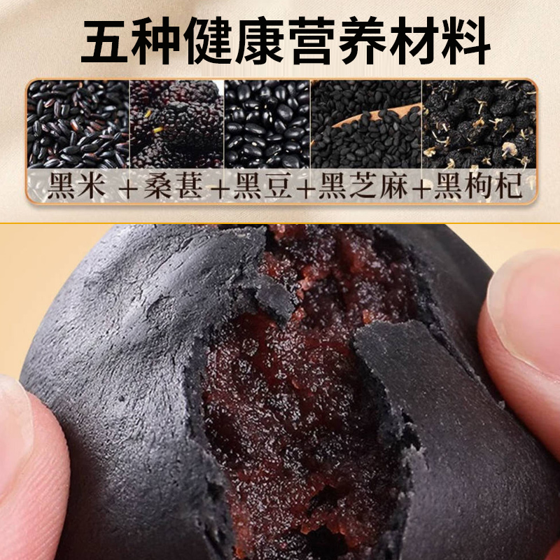 无蔗糖五黑桑葚紫米饼早餐代餐零食粗粮面包饱腹低糖嘴馋零食