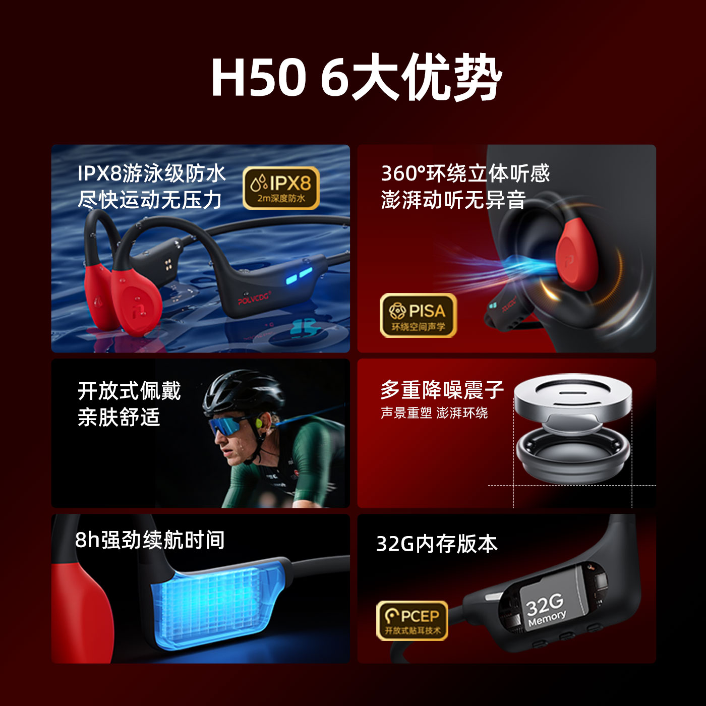 铂典H50游泳骨传导蓝牙耳机运动跑步防水训练无线不入耳2025新款