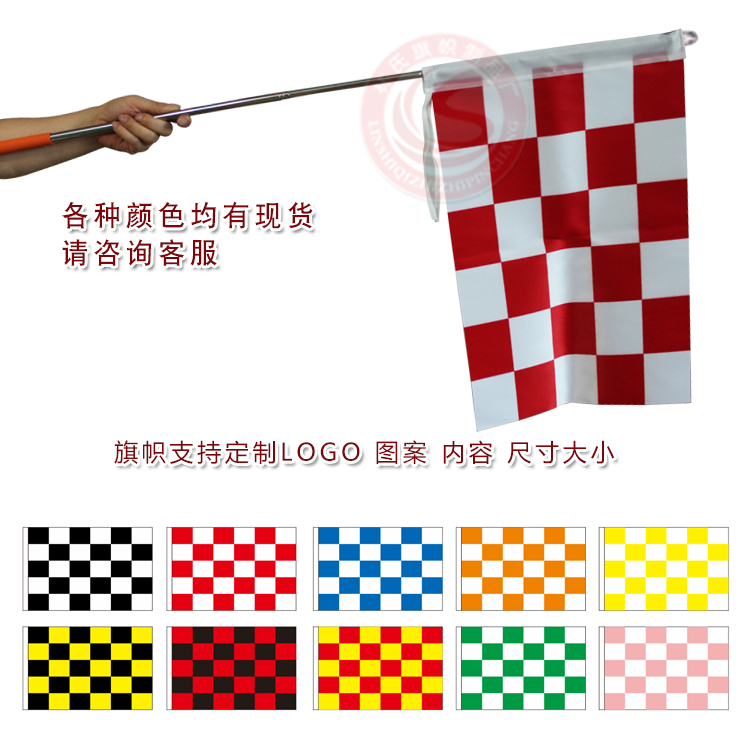 F1赛车旗格子旗手摇旗发车令黑白卡丁车双面旗帜含不锈钢伸缩旗杆