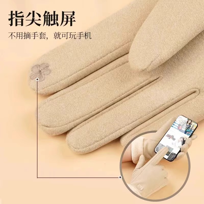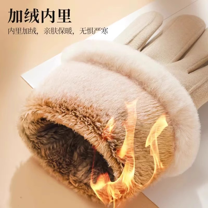 手套冬天女加绒加厚保暖可爱麂皮绒女士骑行防寒骑车防风触屏冬季