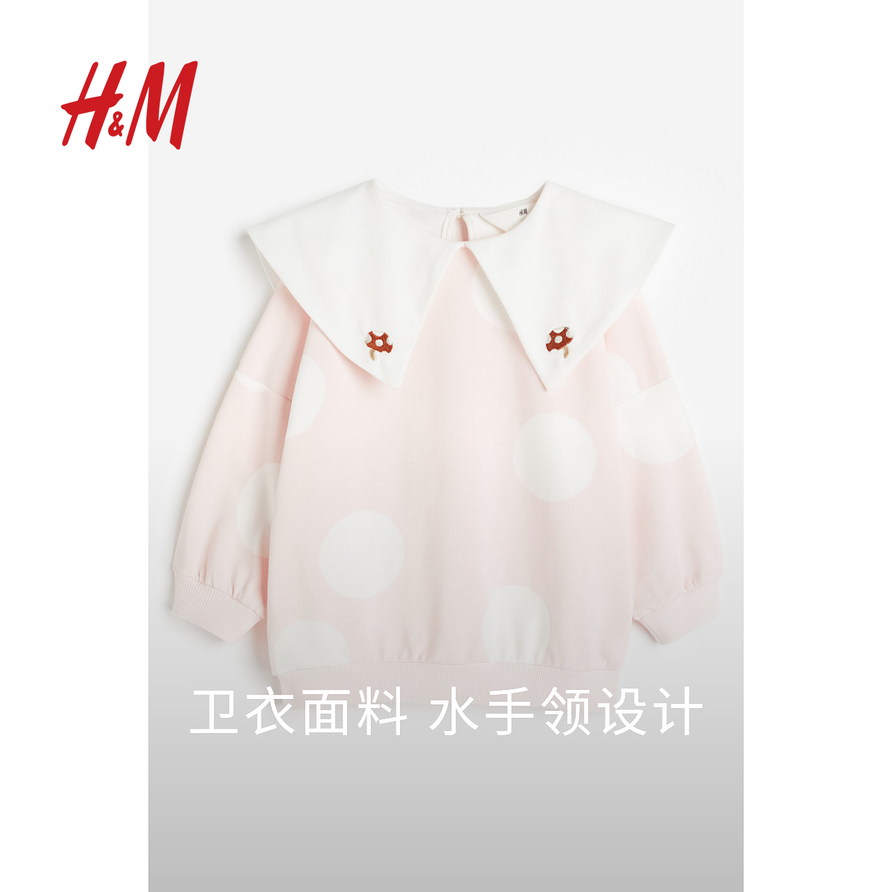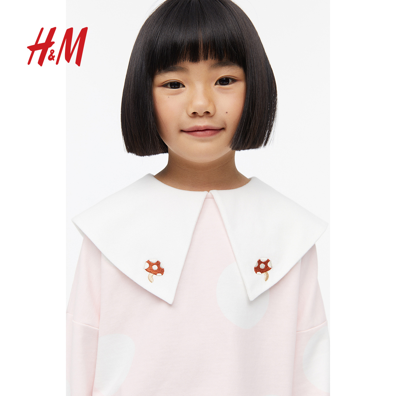 HM童装儿童女童卫衣秋季轻便大廓形休闲有领长袖上衣1203326