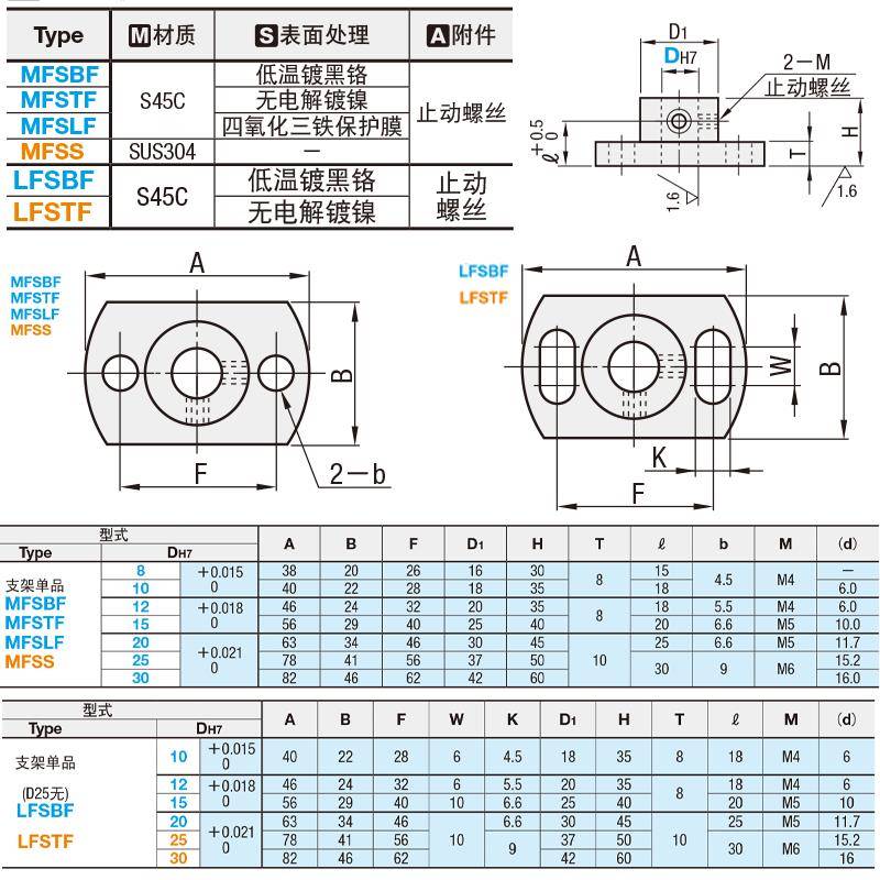 底座支座对边法兰型钢制发黑 通孔RBN01 MFSBF 腰孔LFSBF RBN31
