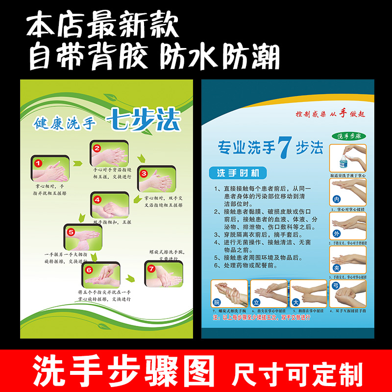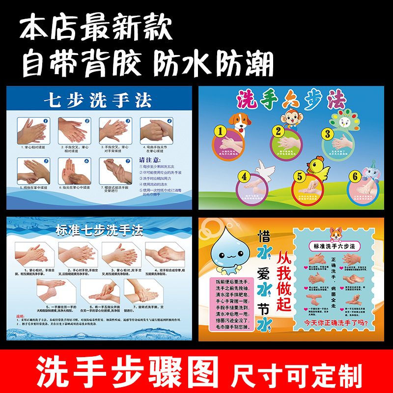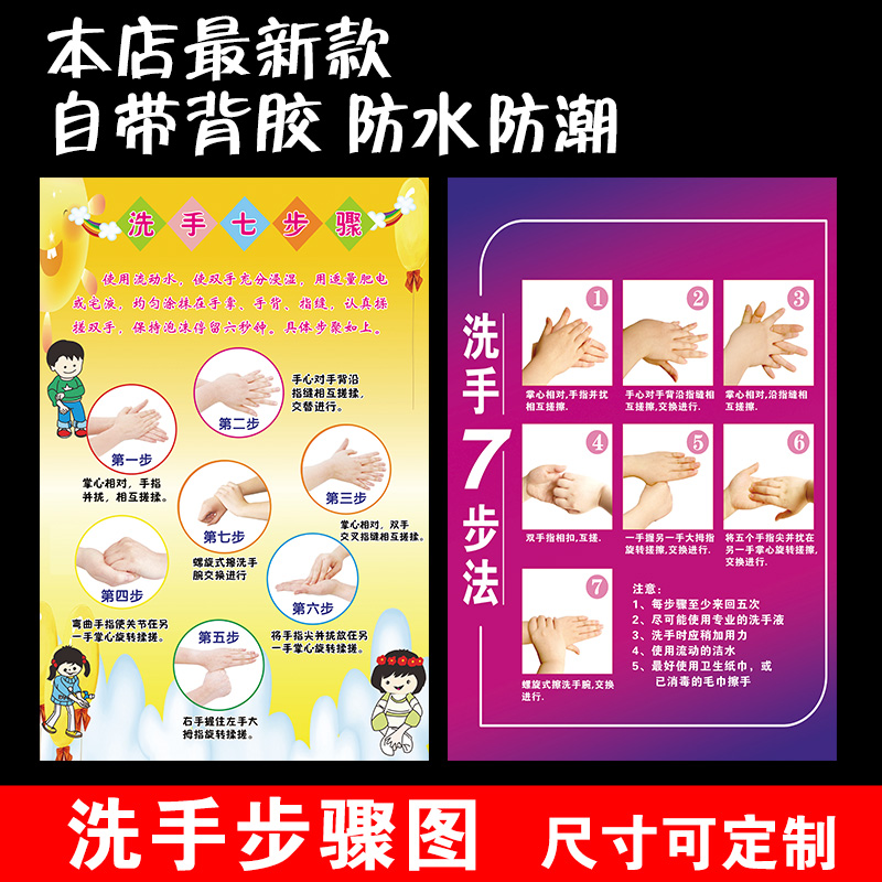 七步洗手法7步骤图墙贴纸六步洗手防水标准幼儿园洗手间医院诊所