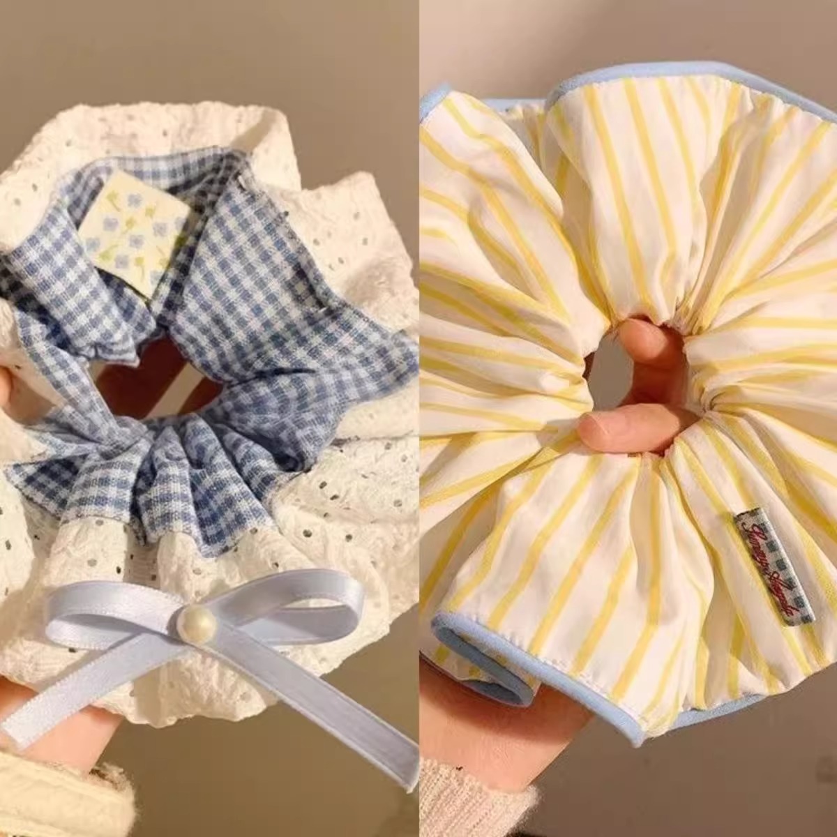 韩式风高颜值黄色条纹花边发圈女夏天扎头发欧若风头绳发绳韩系