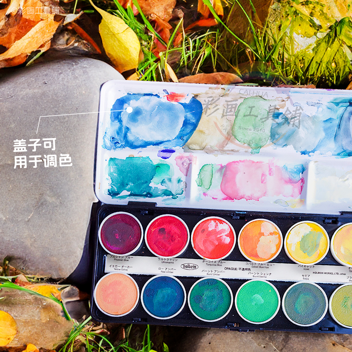 网红蛋糕盘日本水彩荷尔拜因不透明固体颜料水彩24色12色宫崎骏风