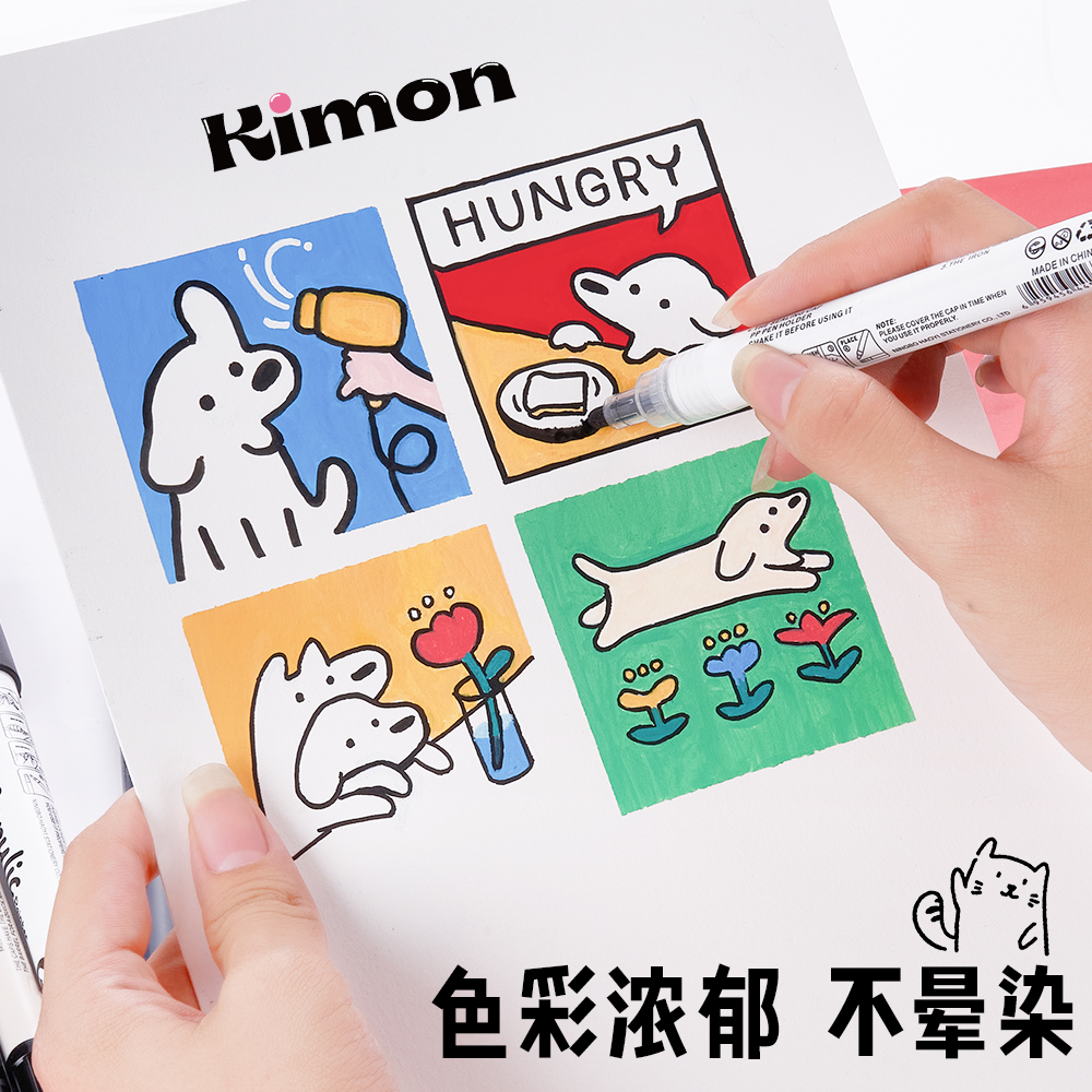 恩米小黑盒直液式丙烯马克笔软头颜色笔小学生幼儿园画画美术专用