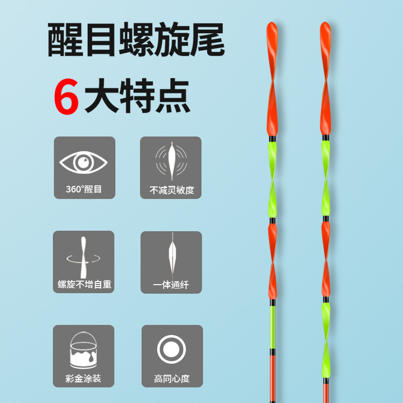 高灵敏加粗醒目螺旋尾浮漂轻口鲫鱼漂抗走水鱼漂黑坑底钓硬尾漂