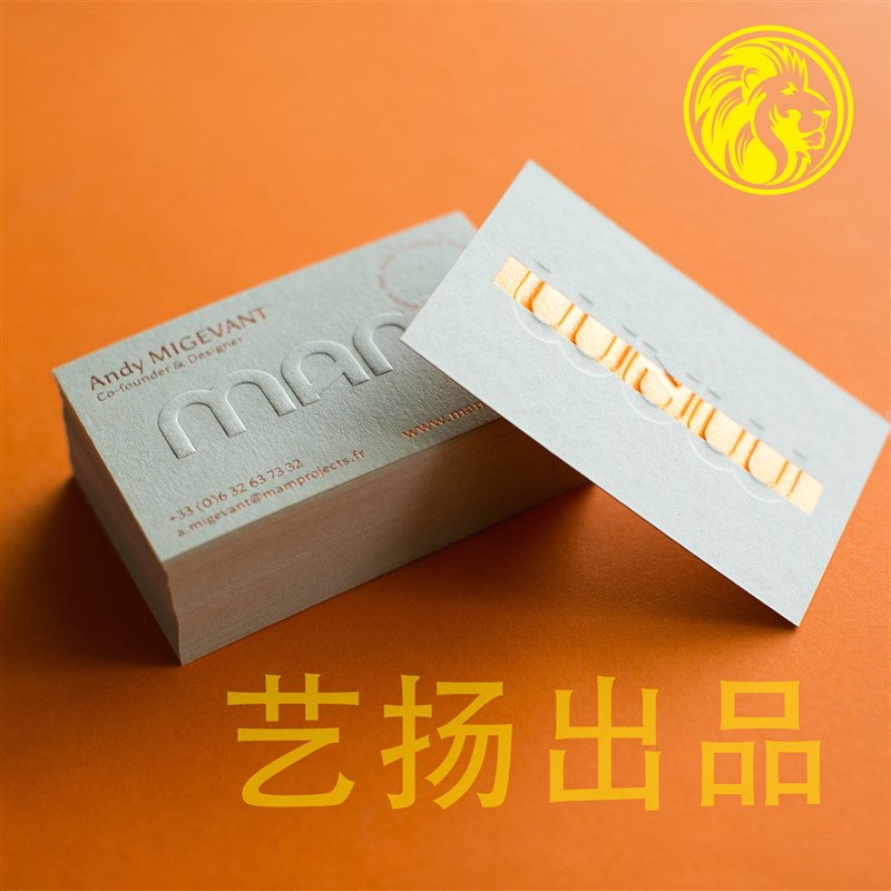 新品橙色棉纸名片/碧绿色/浅灰A色棉纸/烫白凹印/激凸/烫古铜金压