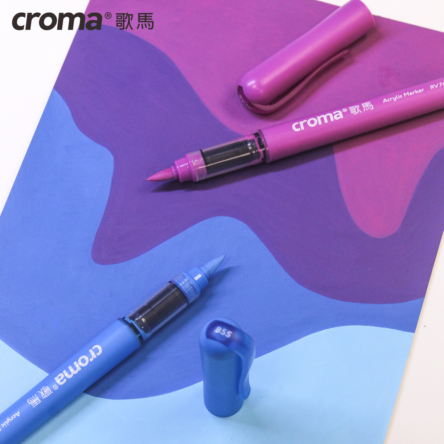 歌马croma可替换墨囊直液式软头丙烯马克笔单支自选小学生美术专用不透色可叠色160色可水洗儿童防水水彩画笔