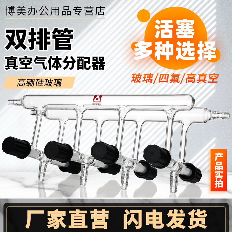 速发双排管单排管真空气体分配器高硼硅玻璃真空活塞/4/5/6四氟活
