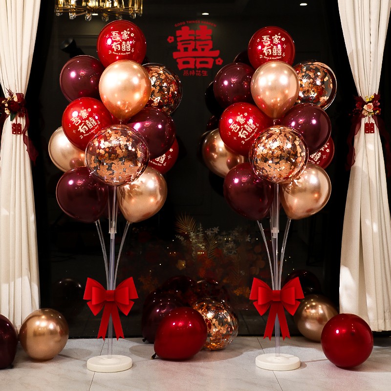 结婚气球地飘布置套装订婚客厅婚房场景立柱装饰新房路引婚庆气球