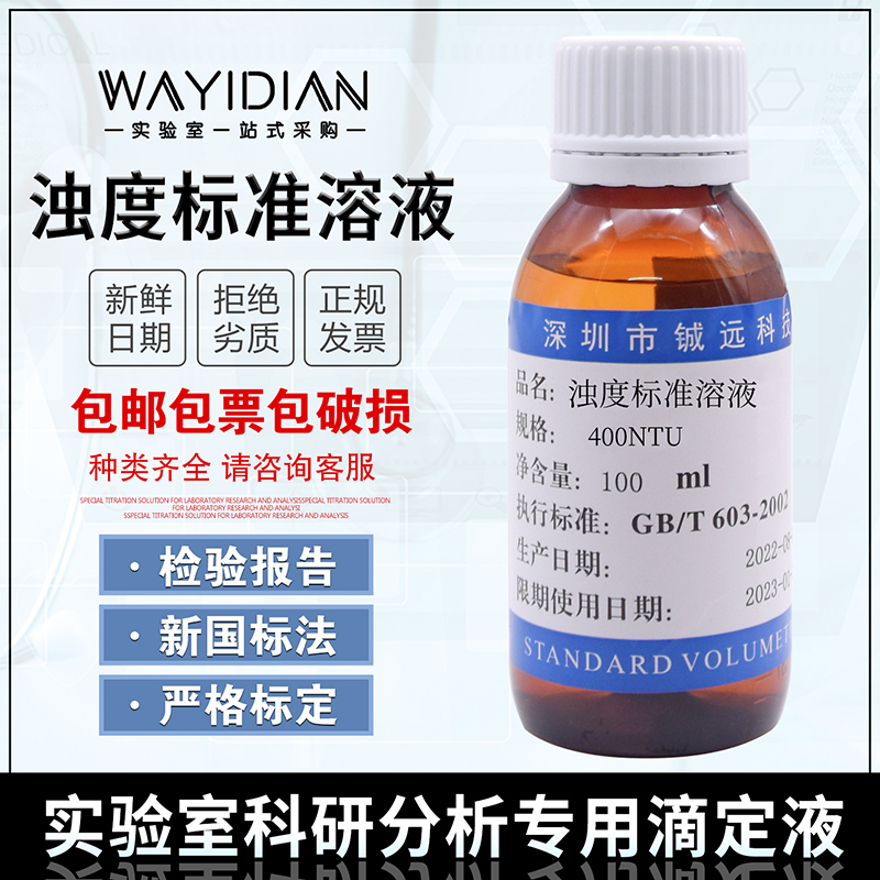 极速浊度标准溶液400NTU标样质控样试剂水质仪校准液10X0ml深圳铖