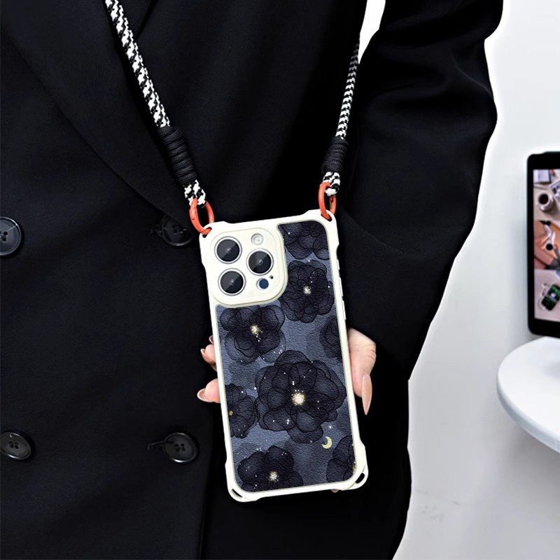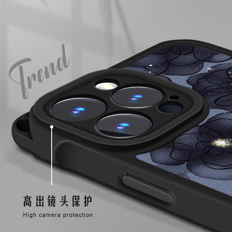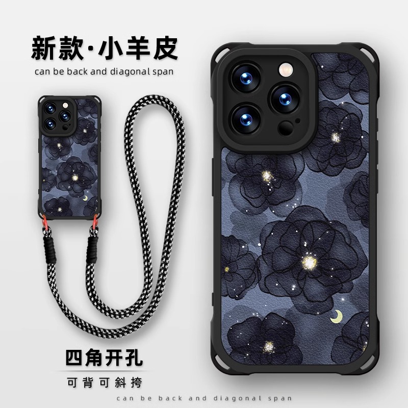 水墨山茶花适用苹果16promax手机壳四角防摔iPhone15por保护套小羊皮14por斜跨长短挂绳13pm小众复古12女款11
