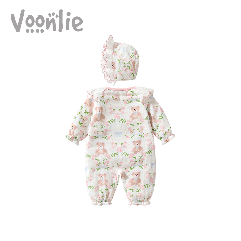 babycare秋新款山茶花连体衣宝宝包屁衣新生儿爬服外出服婴儿衣服