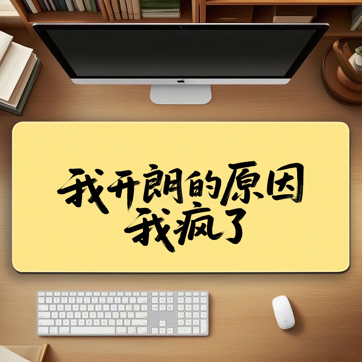 黄底黑字我开朗的原因鼠标垫家用儿童书桌垫护眼治愈耐脏个性耐脏