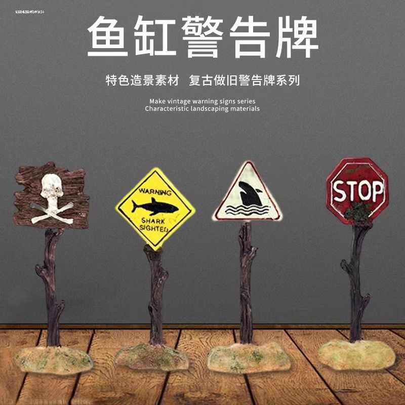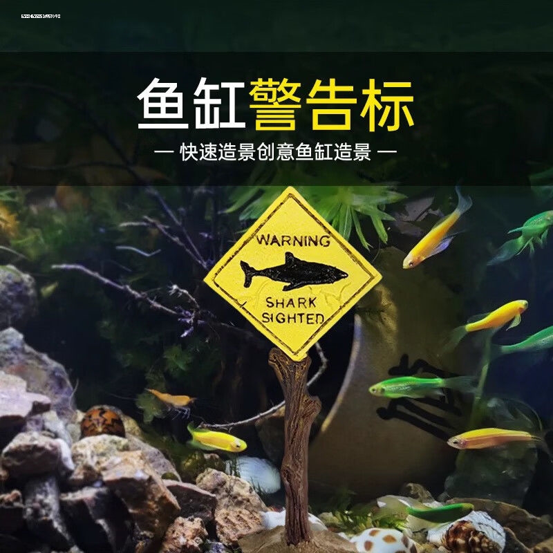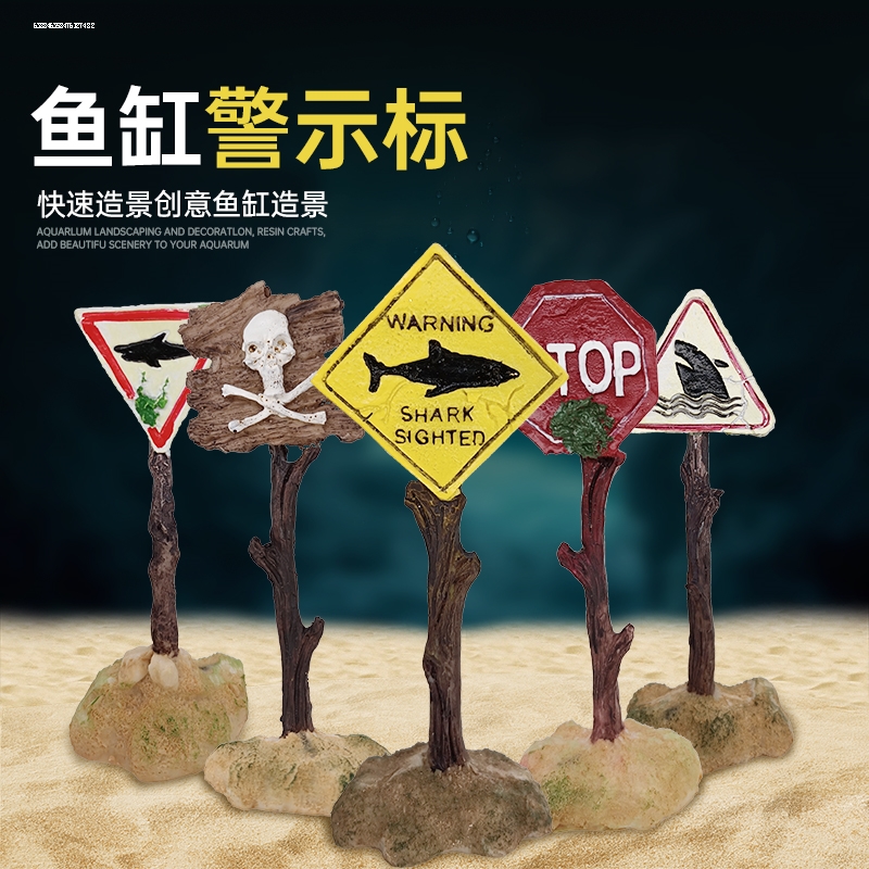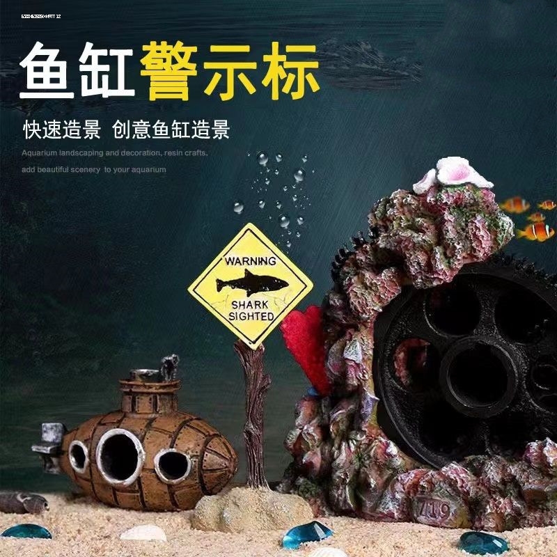 鱼缸造景装饰水族箱鲨鱼牌树脂小摆件鱼虾躲避屋仿真珊瑚标警告标