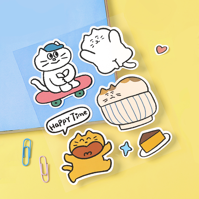 NOTE FOR×MATSUGODA联名 合成纸贴纸 韩国插画师GOMATSU搞怪猫咪生活手帐行李箱电脑平板装饰素材